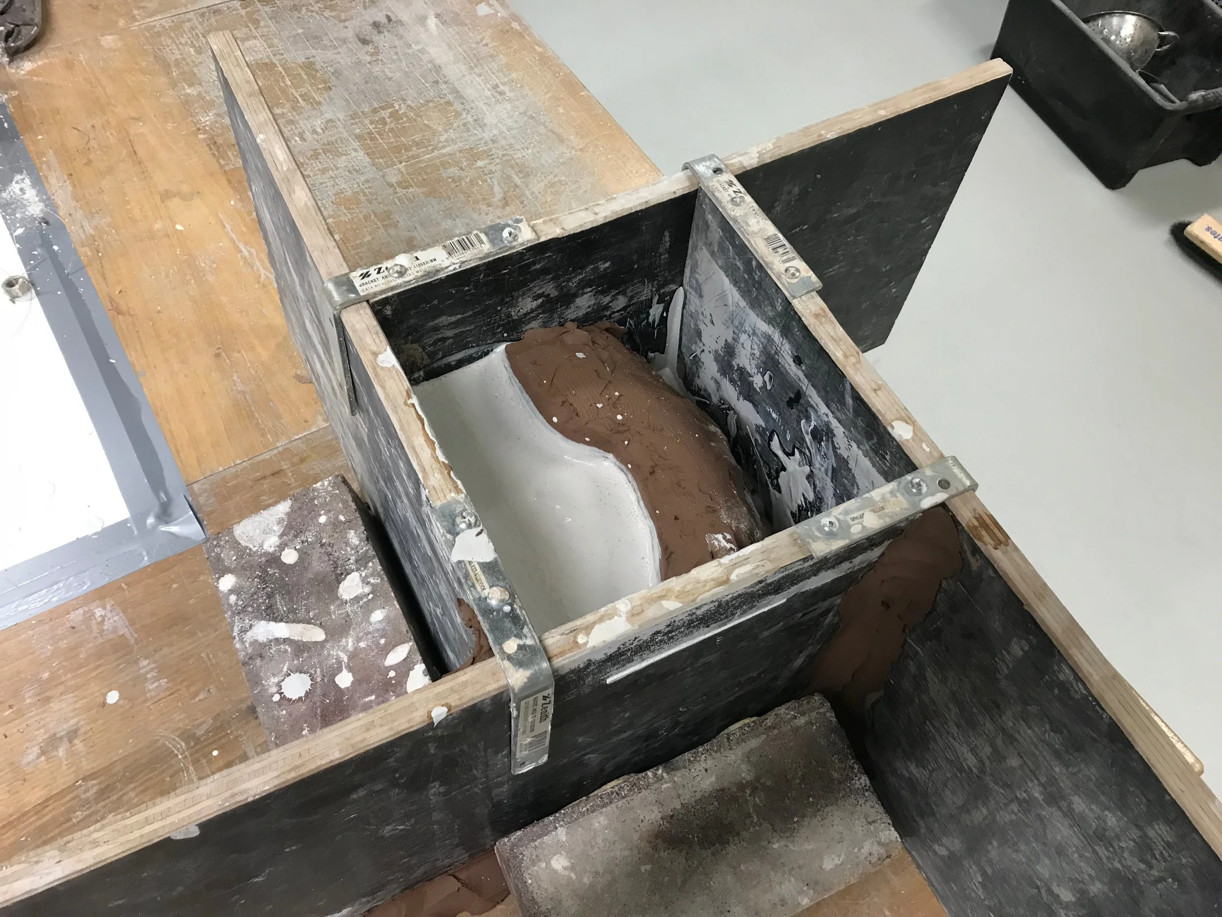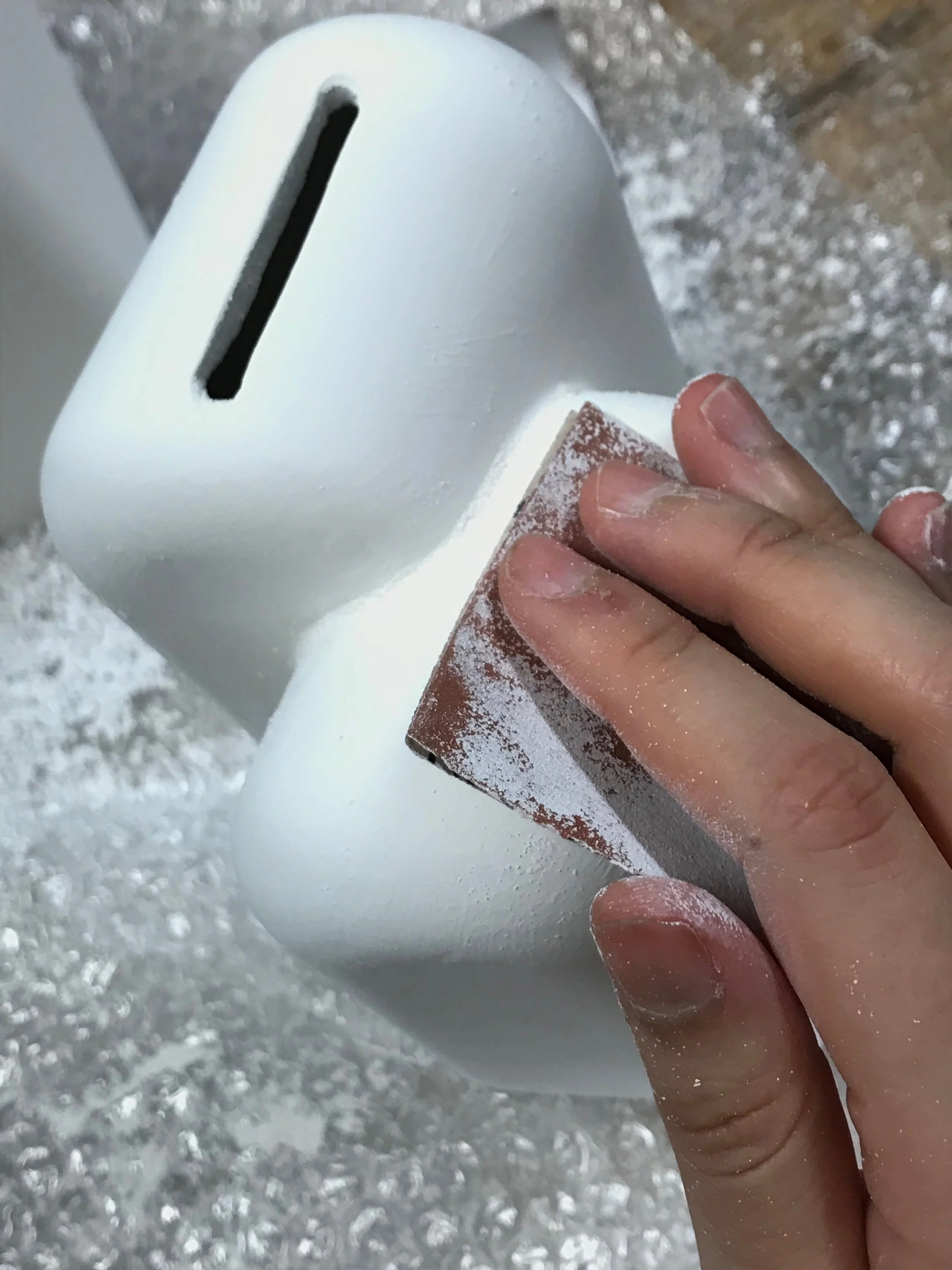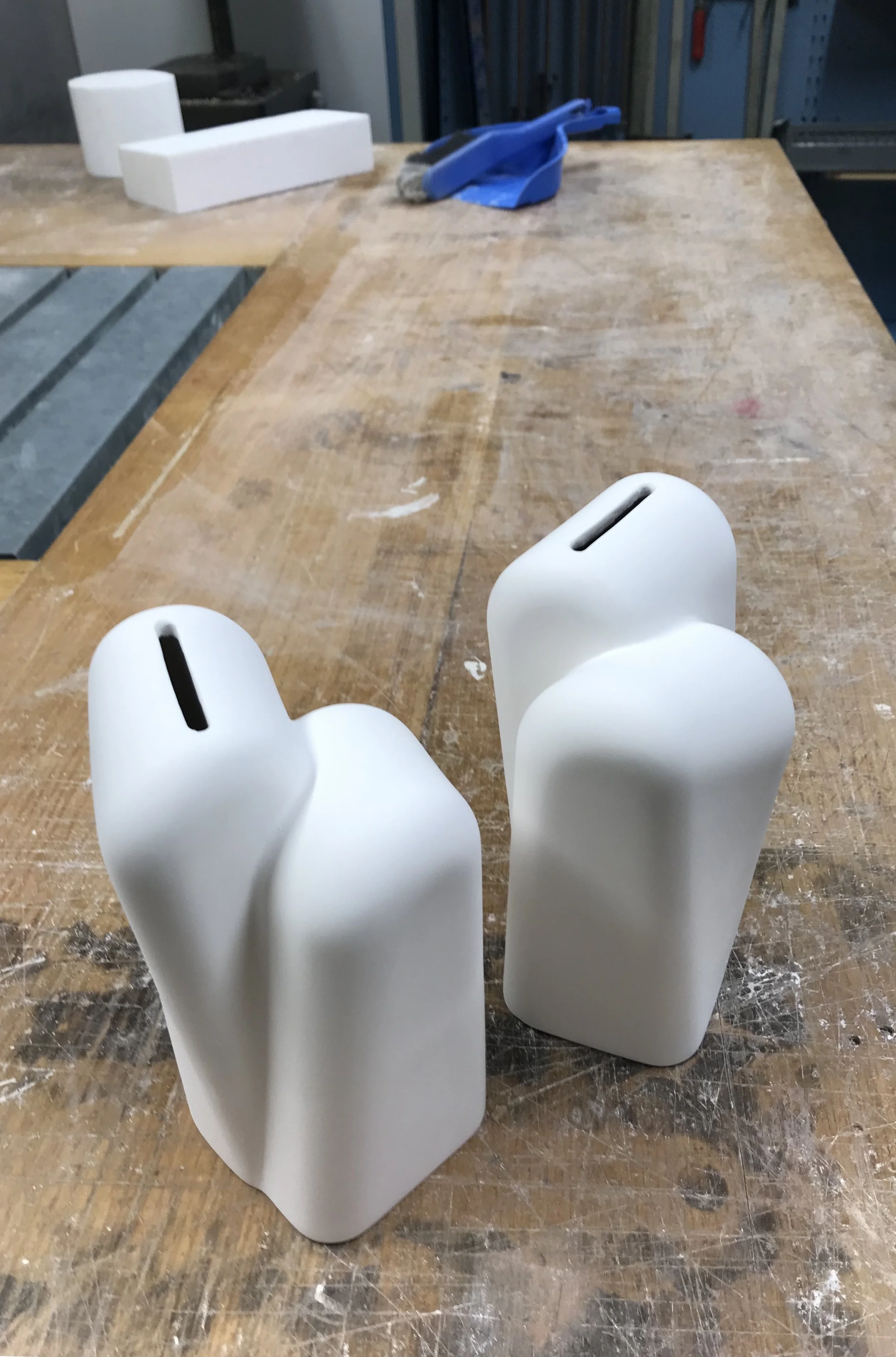 Additive manufacturing technique was used to make the master prototype, which is then made into a plaster mould. The money box was made using the slip casting process with the consideration of using as minimal mould parts as possible, yet having an interesting organic shape.
